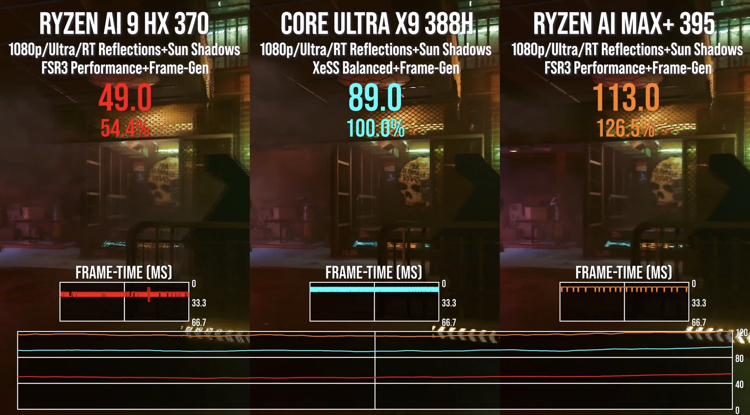 搞不懂还有人怎么对395还有偏见,395最大问题是17w tdp以下几乎不可用,17w开始能效原来越好,直到55w几乎碰到带宽瓶颈,怎么还在低频没优势,真以为ptl 30-40wtdp能打395?jkw这视频里67的ptl帧数错的离谱,正常只有他这个设定37fps,按intel官方黑猴 ptl 45wtdp 1080p high setting 30fps,对应hx370 53w tdp 19fps,对应395 35w tdp 40fps