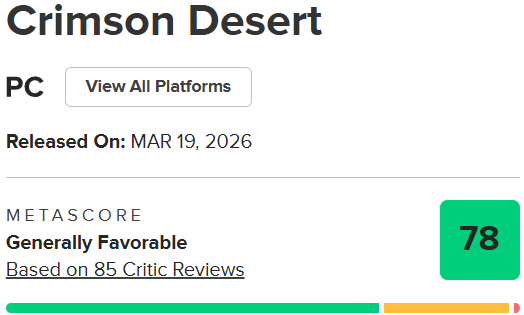 标题:红色沙漠 媒体评分解禁